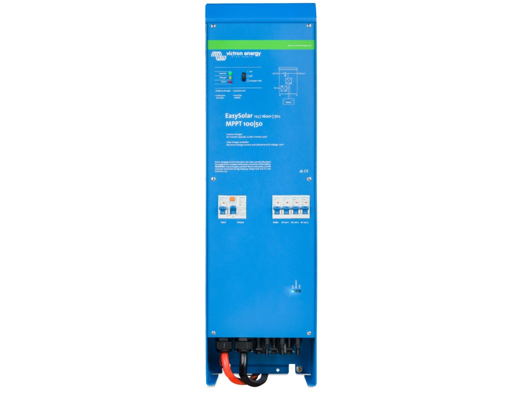 Ide o kompaktné zariadenie dva v jednom spájajúce zariadenia menič / nabíjačku (MultiPlus) a solárny MPPT regulátor. Menič / nabíjačka odoberá vyrobenú energiu priamo zo solárneho systému a / alebo energiu uloženú v batérii, premieňa ju na striedavý prúd a napája pripojené 230 V AC spotrebiče. V najnutnejších prípadoch (pozri ďalej) využíva aj energiu z distribučnej siete (alebo iného zdroja, napríklad generátora). Solárny MPPT regulátor maximalizuje množstvo vyrobenej energie z fotovoltaických panelov, odovzdáva energiu meniču / nabíjačke pre napájanie spotrebičov a prebytky energie ukladá do batérie pre jej budúce využitie v čase nedostatku solárnej energie (napríklad v noci).
