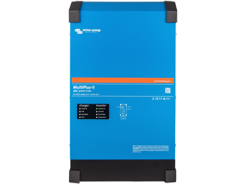 MultiPlus-II, ako názov napovedá, je kombináciou striedača a nabíjačky v jednom elegantnom prevedení. Jeho rad funkcií zahŕňa čisto sínusový menič, adaptívne nabíjanie, hybridnú technológiu PowerAssist a ďalšie funkcie pre integráciu do rôznych typov systémov.