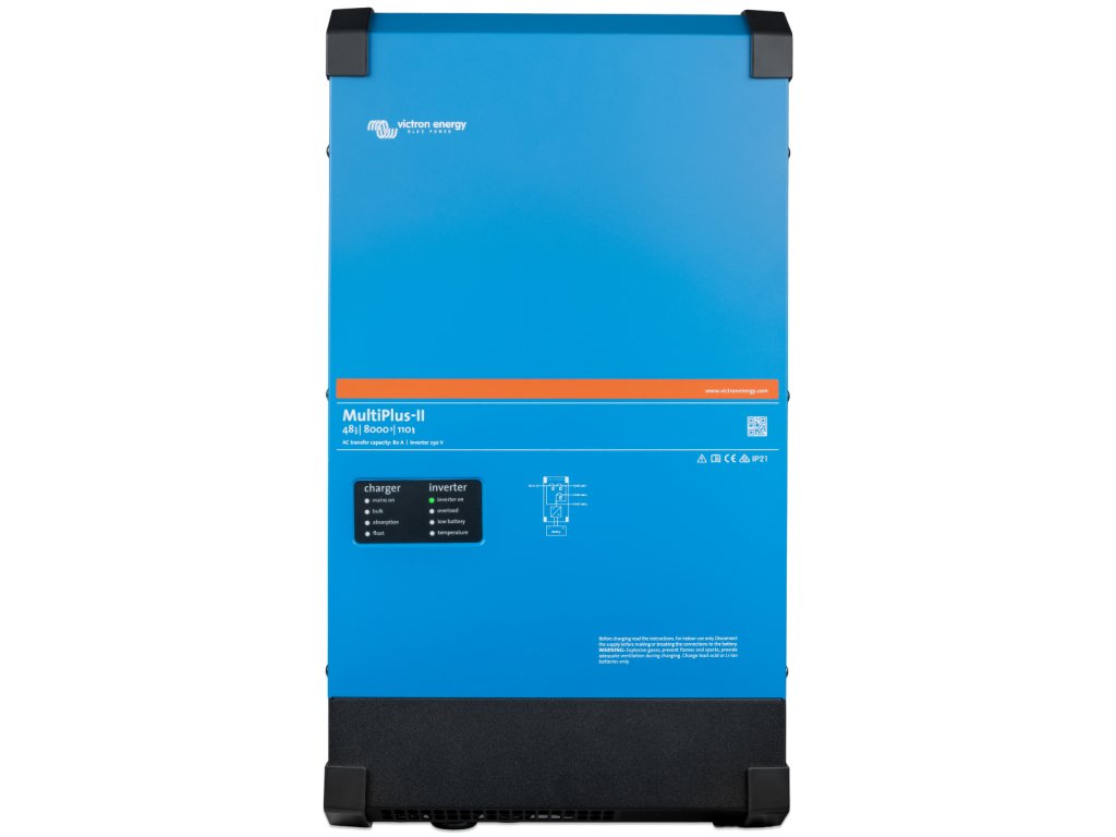 MultiPlus-II, ako názov napovedá, je kombináciou striedača a nabíjačky v jednom elegantnom prevedení. Jeho rad funkcií zahŕňa čisto sínusový menič, adaptívne nabíjanie, hybridnú technológiu PowerAssist a ďalšie funkcie pre integráciu do rôznych typov systémov.